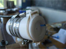 我们第一次激光快门机构只是一块自行车制动器电缆包裹在聚四氟乙烯磁带。 电缆的电磁驱动,驱动Teflon-wrapped纤维终点站和目标之间,防止激光光学退出安装。 石油或砂砾在聚四氟乙烯导致麻烦浓浓的聚四氟乙烯纤维终点站冷凝。