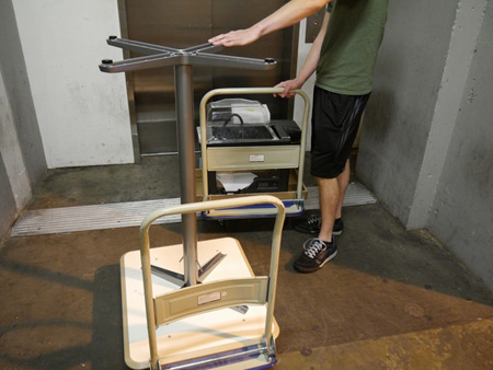 美国Makerbot 3D打印机总部的打印机和一些周边设备运输到电梯里。