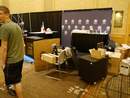 美国Makerbot 3D打印机总部的展台,仍在组装。