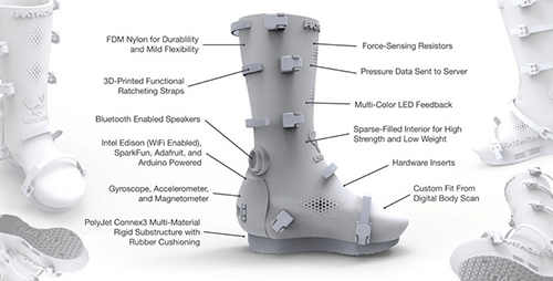 FATHOM公司的设计师利用他们的专长3D打印机来打造这个个性化的高仿真假肢,该工作室还提供设计和工程资源,他们使用PolyJet为主的3D打印机,基于FDM的3D打印的生产系统,而且还结合了SLS激光切割机,而且他们还尝试了各种设计方便麦克博士使用。而且在使用中可以发送实时的医疗信息给医生,从智能手机播放音乐,并收集数据。