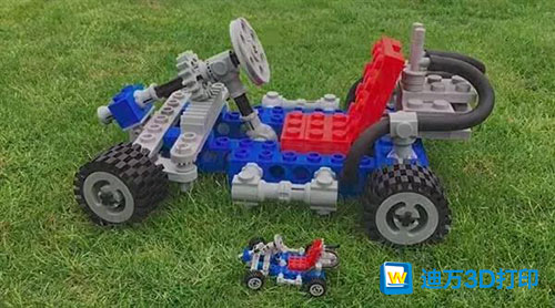 “将乐高Go-Kart原始套件放大5倍,是因为他通过测量之后发现这是他的3D打印机构建平台的最大尺寸。”Denton解释说。