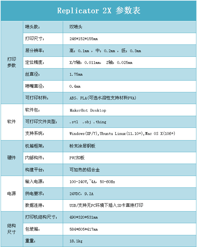 MakerBot公司是Stratasys公司旗下全球领先的生产桌面级3D打印机的公司,MakerBot 2X是Makerbot公司推出的一款双喷头产品,是MakerBot 2 的升级产品,该产品具有以下特点: